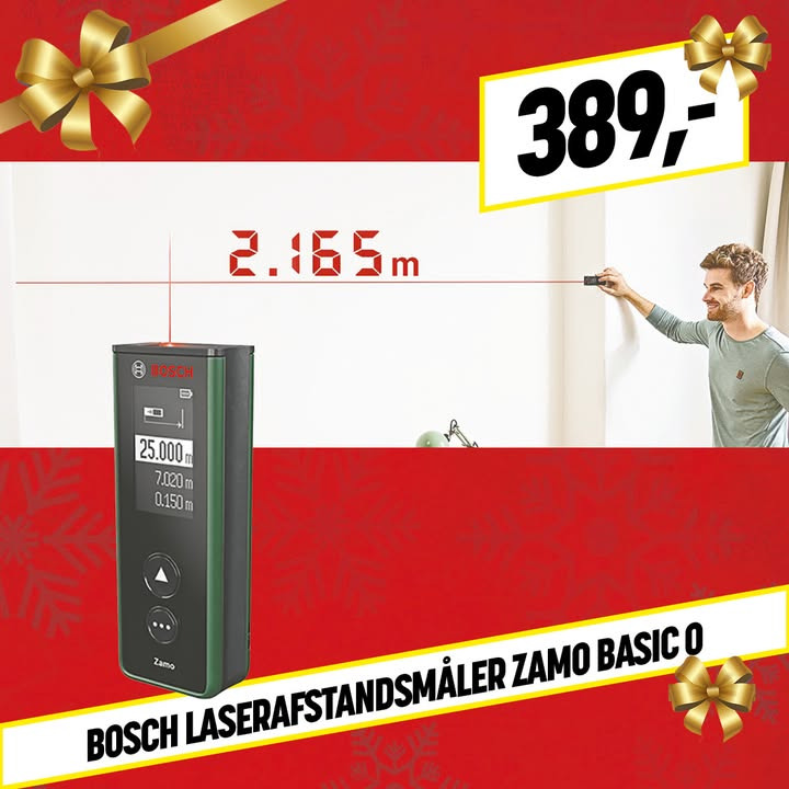 🟢 BOSCH LASERAFSTANDSMÅLER 🟢 Kan både beregne længde og kvadratmeter 🙂 Prisen gælder til og med den 23/12-24 så længe lager haves. Flere juletilbud 👉 https://ow.ly/8pES50UlqXs