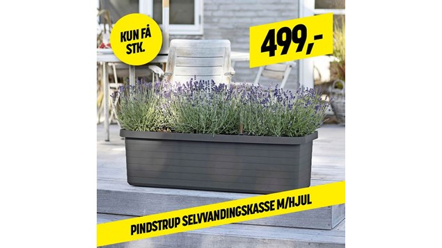 Kassen er fremstillet i kraftigt kunststof i antrazit-grå og rummer ca. 3 x 18 ltr. muld og 27 ltr. vand.