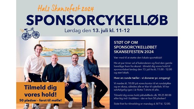 Vi mødes kl. 10.00 på vores kontor til et rundstykke, således alle er klar til cykelløb. Vi har selvfølgelig igen i år flotte t-shirts til alle, der tilmelder sig. Der er 50 pladser, så SKYND DIG - det er først til mølle!