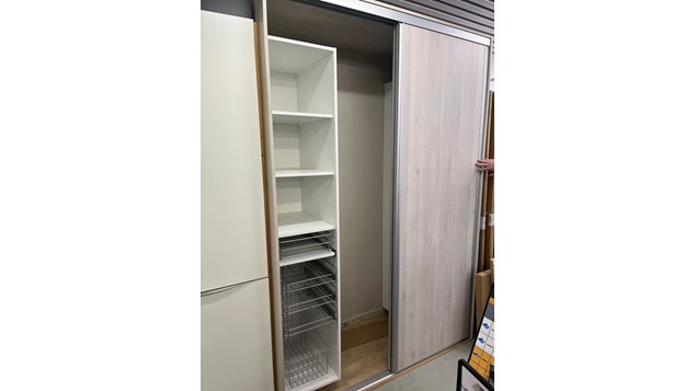 Udstillingsmodel til salg hos XL Byg Tømmergaarden Hals: Garderobeskab med skydelåger til kun 2500 kr.